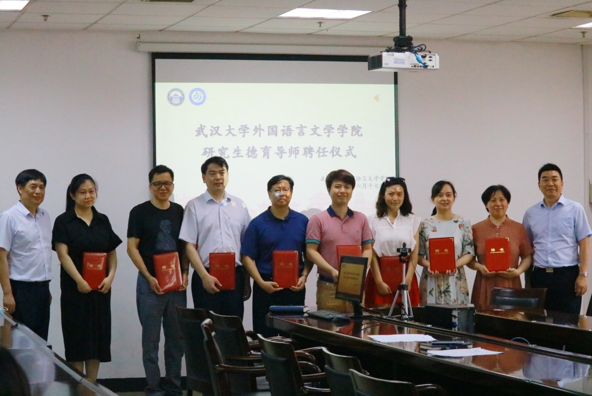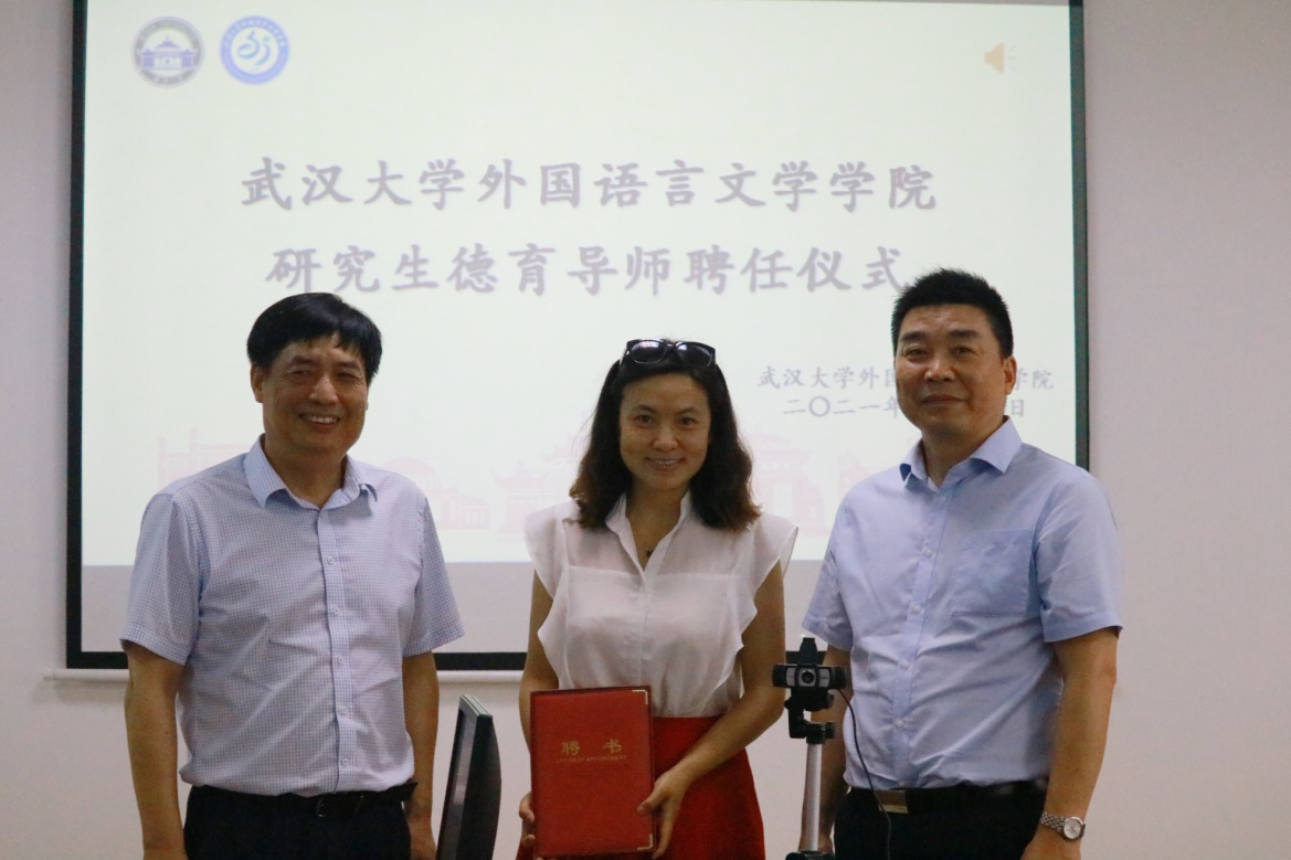 第二项,外语学院研究生办公室主任周新元宣读聘任文件。为落实学院“三全育人”综合改革实施方案,切实加强研究生导师队伍建设,进一步改进研究生思想政治工作,结合学院研究生工作实际情况,学院党委研究决定,在英语语言文学、法语语言文学、日语语言文学、俄语语言文学、德语语言文学、外国语言学及应用语言学、翻译学和MTI等8个研究生学位点聘任9位研究生德育导师。具体名单如下:黄忠、李丹丽、苏昉、李圣杰、田园、徐琼星、赵玲、黄敏、胡玲。