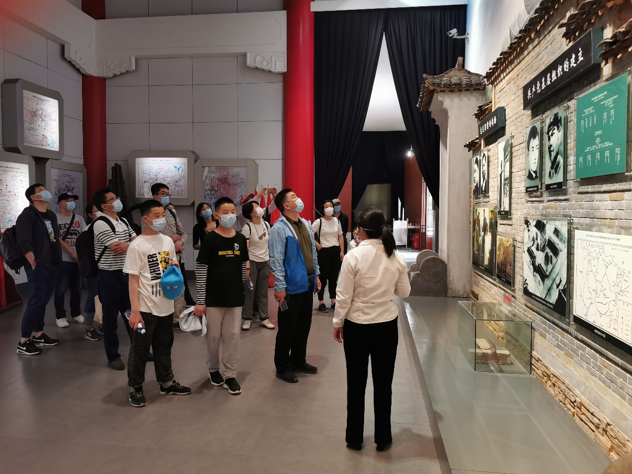 纪念馆讲解员声情并茂地讲述和歌唱黄麻起义和鄂豫皖苏区革命先烈的英勇事迹,全体同志神情庄重,仔细观看每件展品,大家被革命先辈的光辉事迹深深震撼,精神得到再次升华。麻城革命纪念馆占地面积2200平方米,于1979年建成,是一座仿古式的建筑。纪念馆的展厅依次分为序厅、红色土地、英烈忠魂、群星璀璨、将军风采、崛起的麻城六个部分,以幻影成像、追光拟配音、三通道弧幕等多种现代化展示手段,用文字、照片、图片和文物等展现手法,生动地表现了麻城人民的革命斗争史和建设新麻城的艰辛历程。