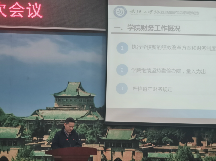 学院行政副院长杨牧文作2020年度学院财务工作报告。他对2020年学院财务工作进行了回顾,对学院各类经费的使用情况作了详细说明。