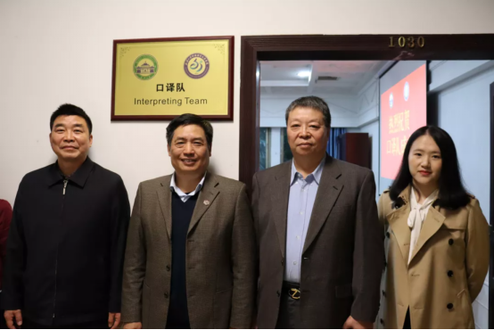 会后,黄宏发书记和马萧院长为武大口译队揭牌。