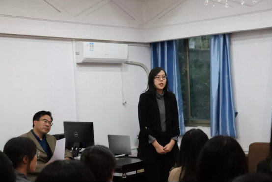 口译队指导老师罗菁从自身从事翻译实践的亲身体会谈起,对口译队队员提出了希望。口译队队员是翻译系优秀且幸运的一批同学,可以接受每周专业的队训,接触高端的国际会议,以及外事活动的实训。但是,在享受这份荣誉的同时,队员们应怀揣更大的责任感与使命感,唯有做到“呼之即来,来之能战,战之能胜”,才能不辱使命。罗老师还表示,她将制定队训计划,关心队员成长,指导口译实践,与大家并肩作战,争取再创口译队辉煌。