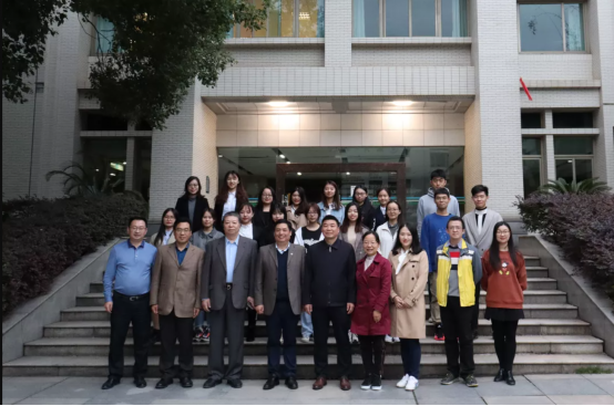 揭牌仪式结束后,领导、老师及口译队队员在外院大楼前合影留念。