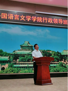 换届说明结束后,外语学院院长马萧代表院行政领导班子进行述职。马院长总结了这四年来外语学院取得的卓越成绩,报告了学院各项工作中的进步与突破,赞扬了抗疫期间外语学院涌出的先进个人,指出了现存问题,并对下一届行政领导班子提出希望。在个人述职时,马院长阐述了自己以身作则、秉公办事、时刻把群众利益放在首位的原则,也深刻指出了自己现存不足,并提出对未来的展望。