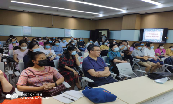 首先,游长松副院长代表学院向老师们致以节日祝贺。随后,游院长介绍了学院举办“信息技术培训会”的目的,强调将信息技术引入外语课堂的必要性和重要性,要求老师们要与时俱进,学习和掌握最新的教学理念和教学手段,用好智慧教室,提升教学质量。