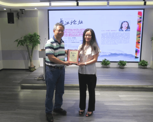 7月7日上午,Li Li教授做客长江论坛,带来题为《在语言课堂中开发专业技能和学习机会:对话分析给我们带来什么启示?》专题讲座。 杨华教授为Li Li教授颁赠长江论坛纪念牌,国产直播