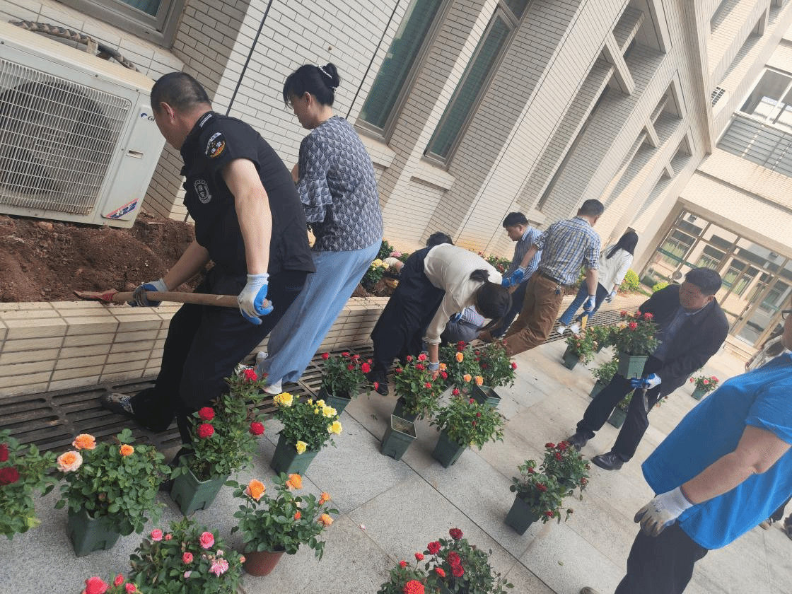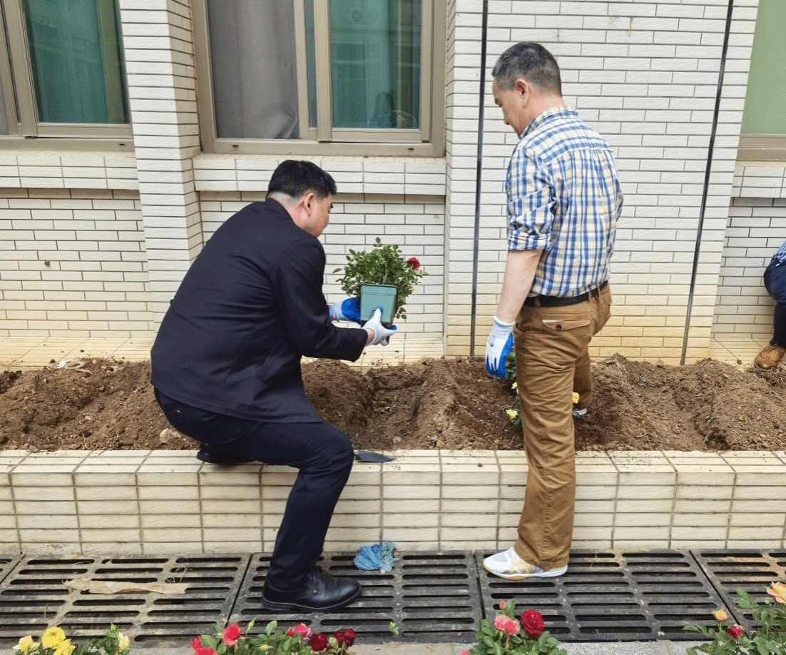 (通讯员:王敏)为美化学院环境,给学院师生提供更加温馨舒适的学习工作氛围,4月26日下午学院行政办公室组织开展种植志愿服务活动。学院党委书记黄宏发和副院长杨牧文带领15名志愿者参与月季种植活动。老师们拿着铁锹、铁铲和浇水壶将月季花苗种满学院天井花坛。