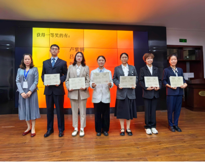 黄敏老师(左一)为特等奖选手颁奖(左二为陈纪凤)