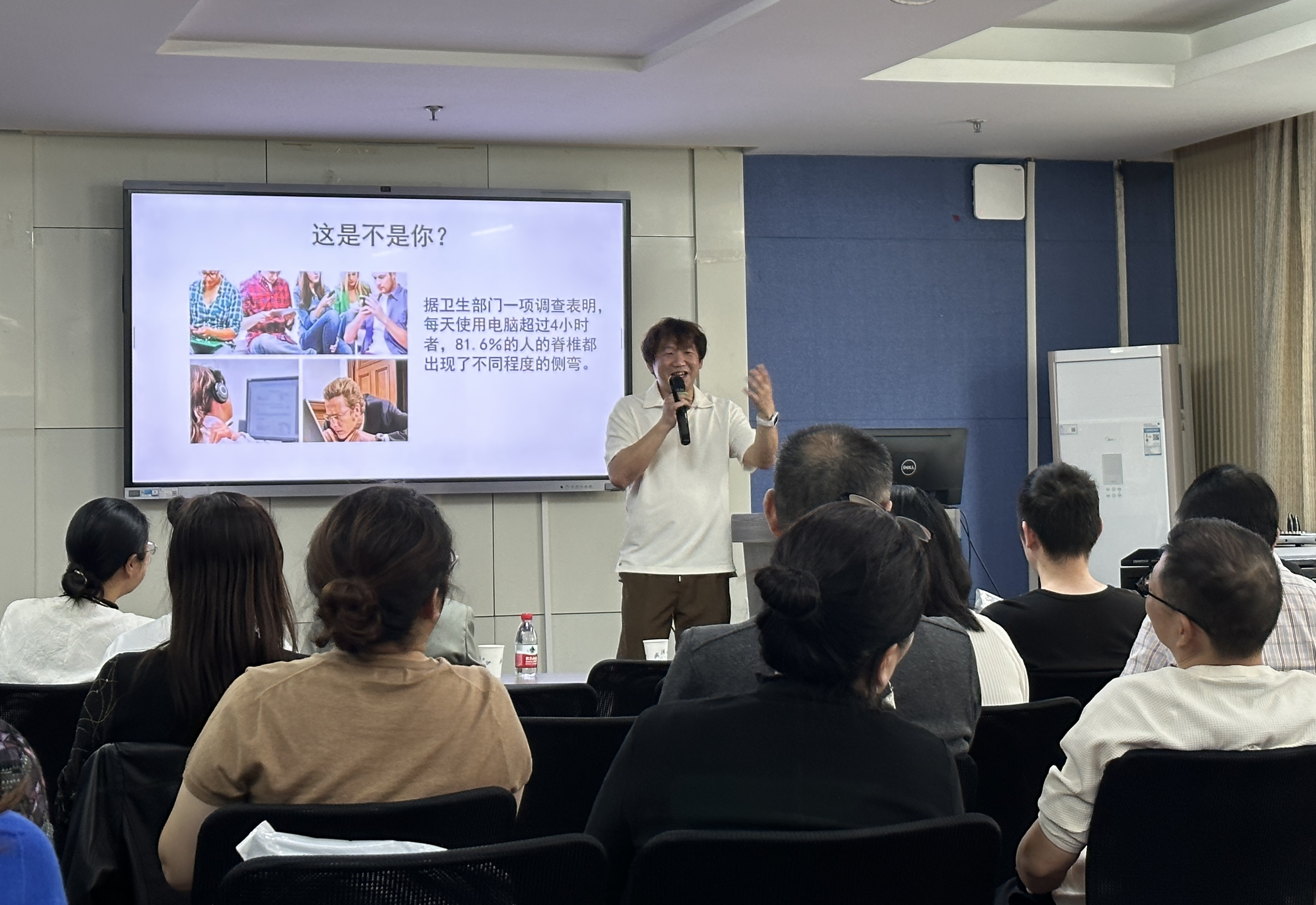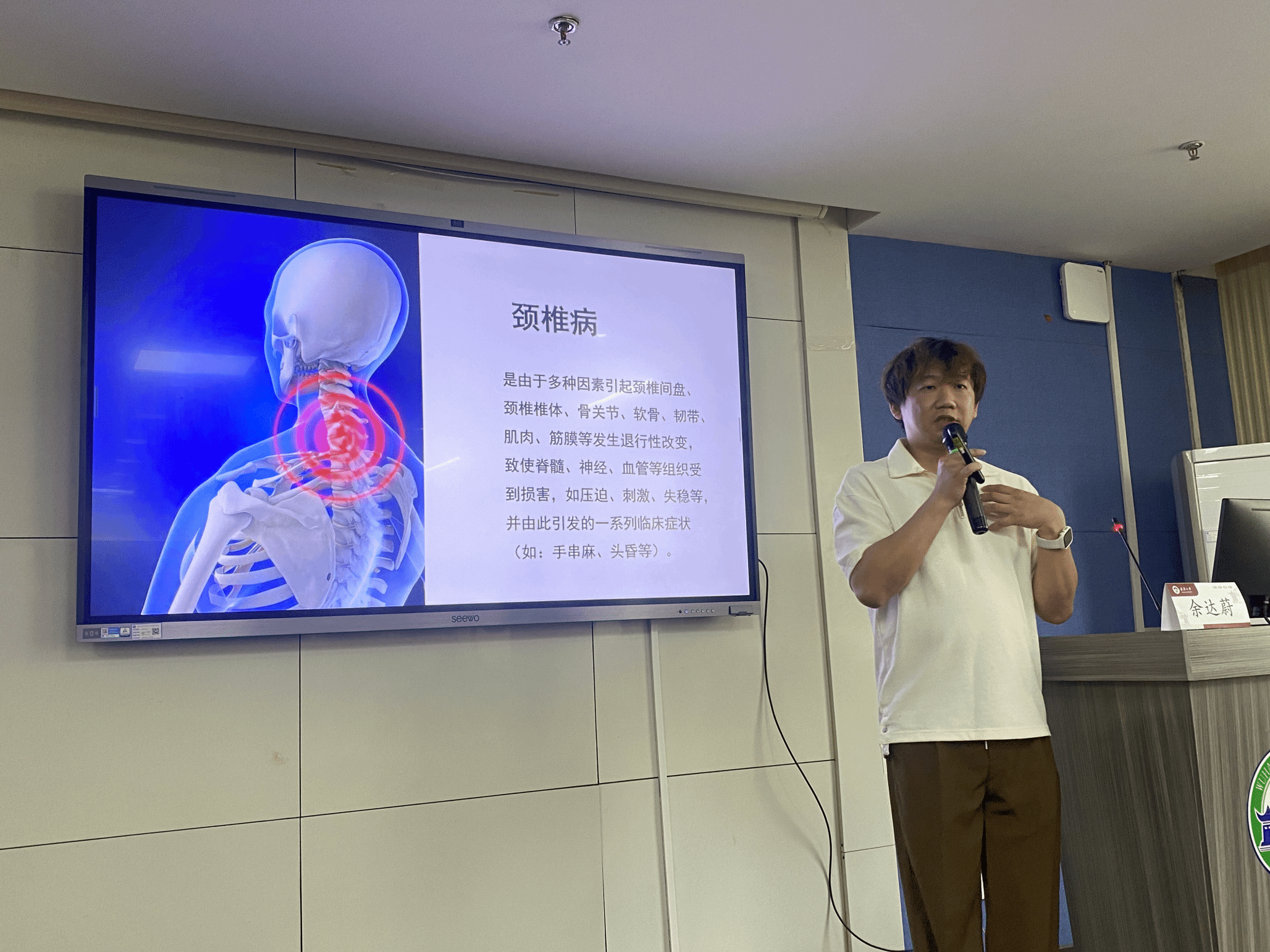 在此次讲座中,余达蔚医生细致入微地讲解了颈椎及肩颈问题的预防与治疗方法。他提到,在快节奏的生活中,各种不良习惯使得颈椎病变得普遍,严重干扰了人们的日常生活。颈椎问题不仅损害颈部健康,还可能引发呼吸系统疾病、头晕头痛等症状。凭借丰富的临床实践经验,余医生生动地阐释了颈椎病的危害及有效的预防策略。他着重指出,培养良好的生活习惯、合理调整坐姿、定期进行颈部锻炼是预防颈椎病的重要手段。在治疗方面,余医生介绍了康复医学在颈椎病治疗中的重要作用,并现场指导大家进行穴位按摩和颈部腰部康复运动,为师生提供了专业的健康咨询服务。讲座现场气氛热烈,教师们跟随余医生深入浅出并带有实操性的讲解,进行颈椎操演练,纷纷表示受益匪浅,意犹未尽。通过参与本次讲座,国产直播