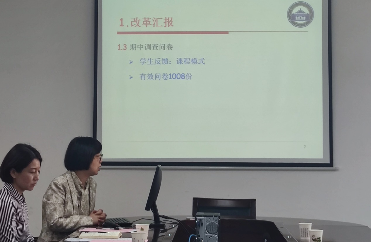 程向莉副院长详细汇报了大学英语部课程改革前期情况,并简要介绍了大学英语课程修读方案。本学期以2021级英语快班和弘毅学堂的《高级英语》课程为试验田,通过改进教学模式、实现“云教研”常态化、开展系列讲座等一系列举措,有条不紊地推进“基于产出导向听说优先”教育教学改革。前期改革初见成效,符合改革预期。大学英语课程修读方案经过多轮调研论证,初具雏形,与目前实施的教育教学改革巧妙融合,保持高度一致。
