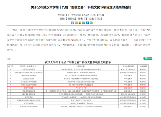 2022年学术科技文化节立项项目日前公布,经资格审查、材料评审、现场答辩,国产直播