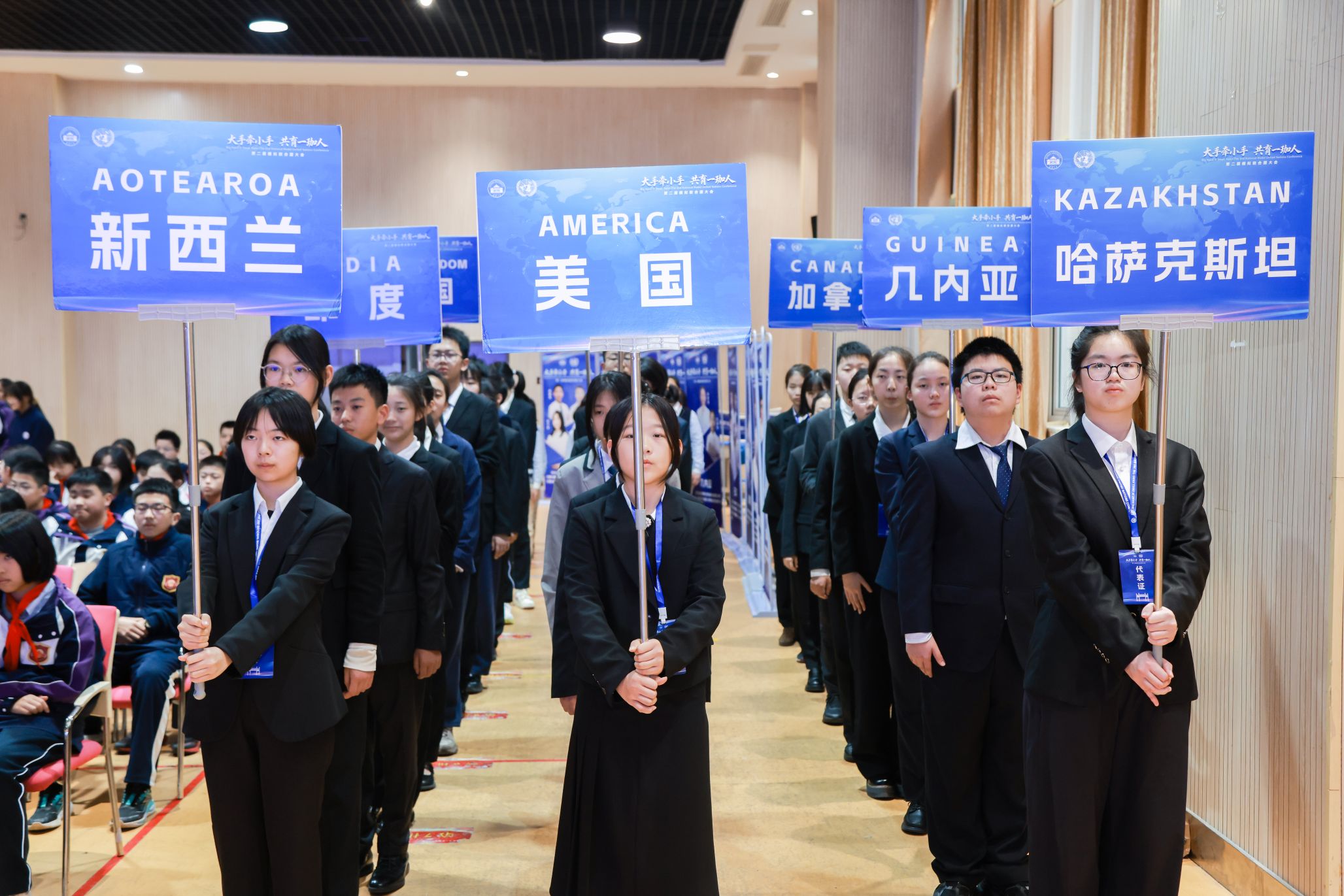 附属外语学校校长陈三军回顾了活动中的动人瞬间:附小同学们多语种合唱《国际歌》的清澈歌声,附中同学们化身各国代表探讨粮食安全议题的自信风采。他特别提到,青少年阶段是人生的“拔节孕穗期”,大中小学齐头并进的办学模式,既让不同学段的学生都能绽放想象力与创造力,又能引导中小学生“扣好人生第一粒扣子”,成长为德智体美劳全面发展的社会主义建设者和接班人。