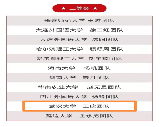 教师王欣、曾丹、章剑组建的团队喜获全国二等奖。本届大赛由教育部高等学校外国语言文学类专业教学指导委员会日语分委员会、中国日语教学研究会、外语教学与研究出版社共同主办,大赛共有来自全国106支参赛团队提交的参赛作品。