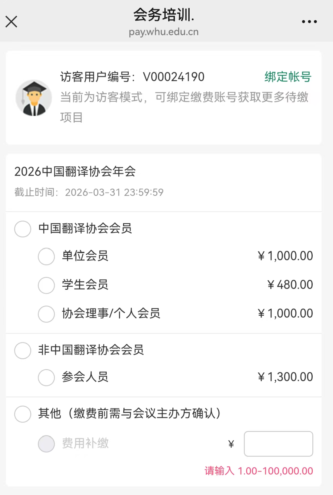 2. 请核实好本人身份类型,会员状态为“暂停”的,请及时缴纳会费,否则需按非会员价格缴费。