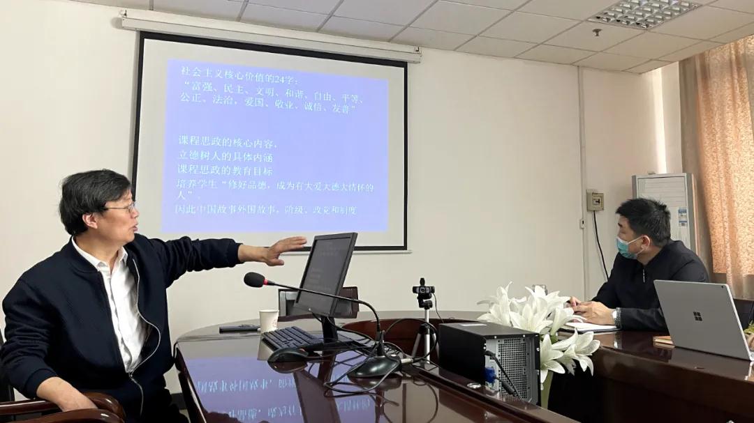 在提问环节,蔡基刚耐心回答了老师们关于课程思政评估、提升教师素养、相关研究方向的问题。程向莉介绍了大英部在课程思政方面所做的一系列工作和取得的进展。