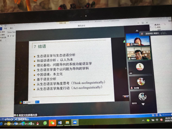 师生作了题为 “生态语言学与生态话语分析”专题讲座,讲座通过腾讯会议