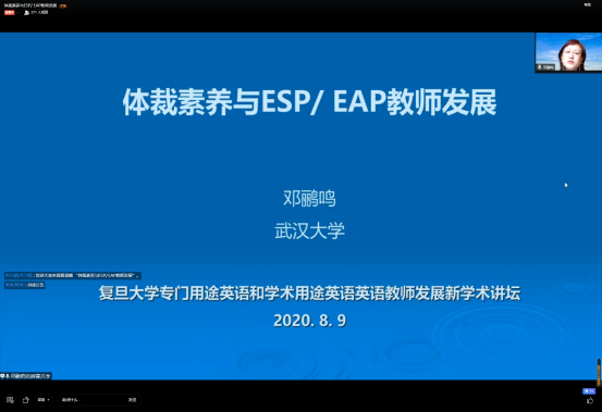 国产直播 邓鹂鸣教授应复旦大学新学术论坛特邀,于2020年8月9日出席本次云端高端论坛,并作了题为“体裁素养与ESP/ EAP教师发展”专题主旨报告,受到与会专家、一线参听学者及教师的一致好评。本次论坛由复旦大学出版社主办,近2000名学者和一线教师齐聚云端论坛,针对当前我国专门用途英语和学术用途英语教师发展的主要问题及新趋势展开探讨,以期更好地推动新文科背景下我国专门用途英语和学术用途英语教师发展。