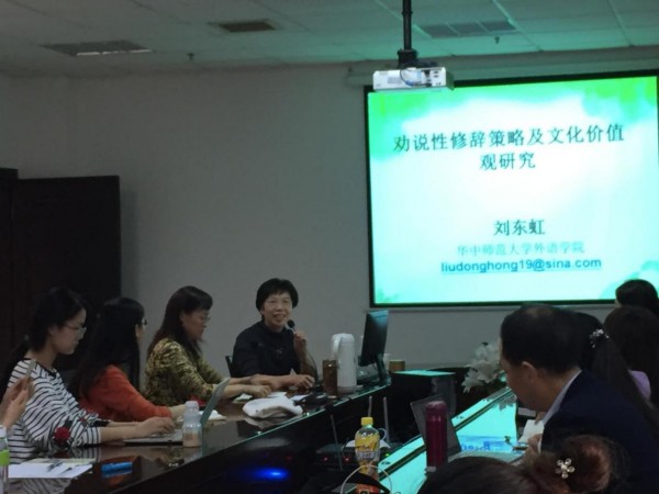 大学外语学院,在3008会议室做了主题为“劝说性策略及文化价值观研究”的学术讲座。讲座由外国语言所所长英文系邓鹂鸣教授主持,英文系张妍岩、李丹丽、刘庆荣、李映老师、大英部程向莉、桂敏等老师以及国产直播