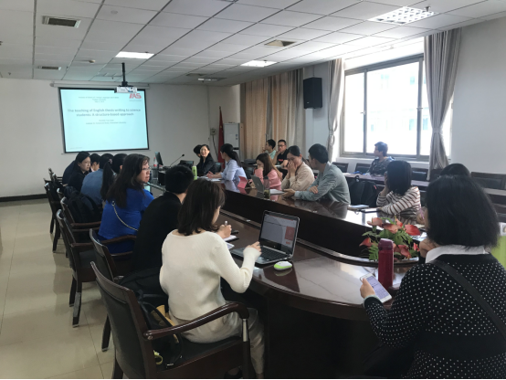 ,在3008会议室进行了主题为“The teaching of English thesis writing to science students: A structure-based approach”讲座。此次讲座由张妍岩教授主持,出席讲座的还有来自英文系的耿云冬老师、刘庆荣老师,大英部的多位老师以及国产直播