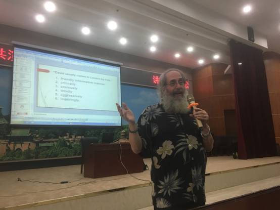 9月28日下午,中央民族大学教授,外研社杯全国英语演讲大赛总决赛提问评委马克•力文(Mark Levine)博士应外语学院大学英语部邀请,在外院学术报告厅做了一场题为How to Be a Great Speaker的讲座。外语学院副院长游长松副教授,大学英语部全体教师以及国产直播