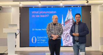 第二场讲座由英文系姜大雨老师主持,围绕“世界英语背景下的发音教学”展开。Hunter Hatfield博士结合动态系统理论,在语音变异普遍存在的背景下,探讨如何在不设定单一目标口音前提下构建更加灵活有效的能力评估框架。