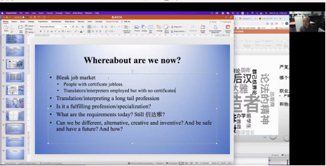 翻译系、词典编纂与翻译中心承办的线上学术讲座成功举办,此次特邀钟勇教授为我校师生开展线上讲座,主题是:《翻译的无限可能性》。该讲座由外语学院马萧教授主持,翻译系等系多名教师及研究生、博士生在线上观看讲座并参与交流。