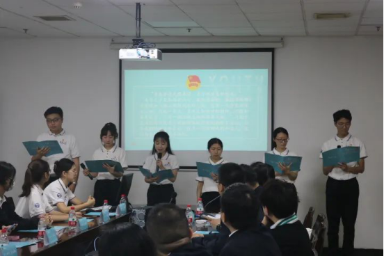 六位来自不同专业的青年代表,分别用中文、英语、法语、俄语、西班牙语、日语、德语七种语言,诵读了向外院青年发出的倡议书,掷地有声的倡议全体外院青年把个人理想融入为祖国、为人民、为民族、为人类发展的壮丽事业,在强国有我的征程中书写不负青春、不负时代的绚丽华章。