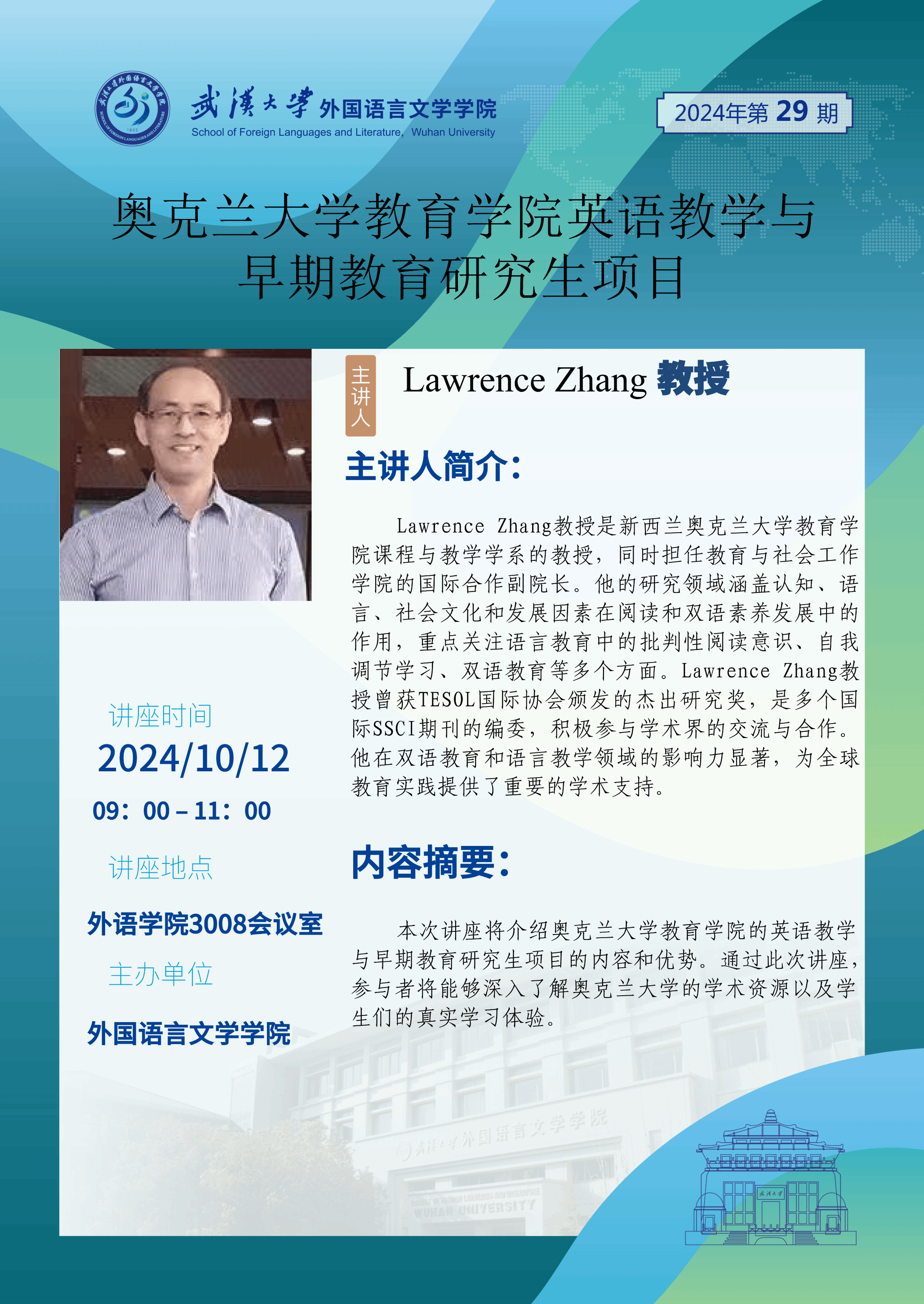 Lawrence Zhang:奥克兰大学教育学院英语教学与早期教育研究生项目